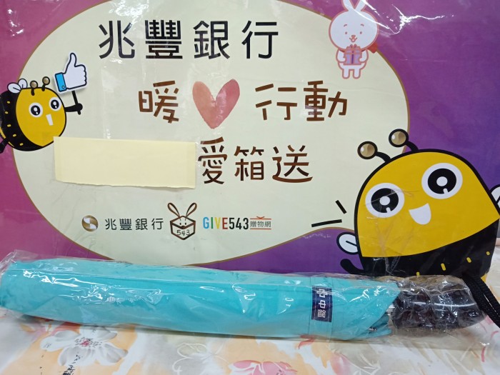 收到淺海綠雨傘1支,非常的感謝兆豐銀行,分享的愛心雨傘,我們會好好的珍惜使用