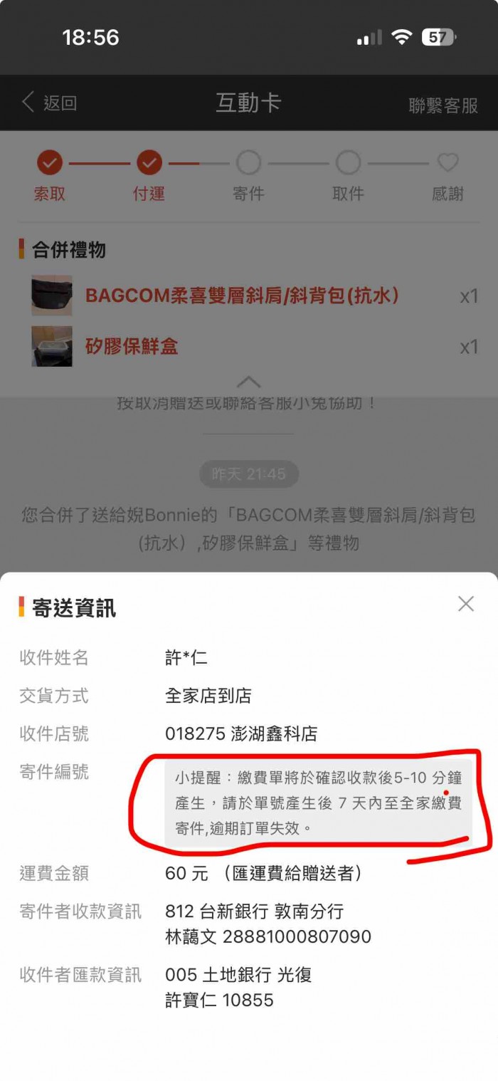 ※提醒:確認運費入帳後,再將贈物寄出喔!收取運費不寄物,除了會被停權,還需負擔法律責任