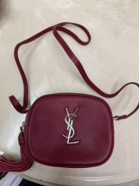 YSL酒紅色流蘇拉鍊側背包