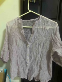 開襟皺摺紫色透膚上衣