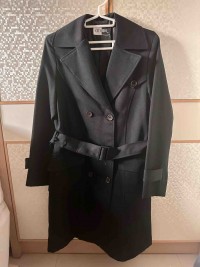黑色長版風衣外套