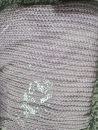 水藍色假兩件配奶茶色帽針織罩衫外套