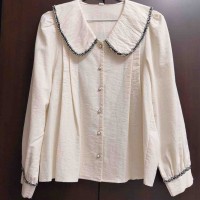 米杏色大翻領氣質甜美襯衫