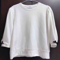 7分袖袖口蝴蝶結白色上衣