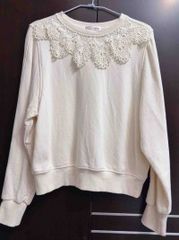 米白色蕾絲領口針織上衣