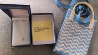 謝謝你寄送來的生日禮物!這條項鍊真的好美,本人更精緻,更美麗,藍色包包也好可愛,可以放手機及小錢包,我真的好喜歡,讀著你手寫的字條,心裡暖暖的,這份禮物我會好好珍惜,讓它們陪著我度過接下來每一個美好的日子。
