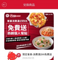 必勝客限定會員禮 3/25到期