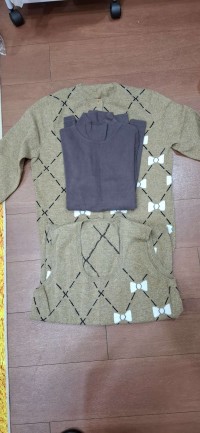 胖媽雯子您好,我收到毛線衣的時候,比照片顏色更溫暖,更舒服,兩件事的穿搭我很喜歡,謝謝您的贈與,希望您事事順心,平安順利